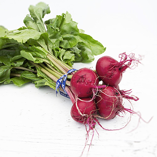 Chioggia Beets are an Italian heirloom variety. Playfully nicknamed Candy Cane Beets, Chioggia Beets are deep pink on the outside with circular candy cane stripes on the inside. A flashy addition to any meal, these beets taste earthy and sweet. Beet greens are edible and have an earthy taste similar to Chard.