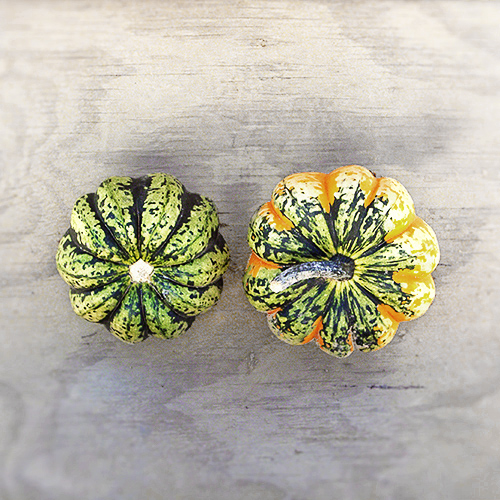 Visually striking with deep ribs of orange and green, this winter squash is a cross between Acorn and Sweet Dumpling Squash. Carnival Squash taste slightly nutty and sweet with a soft texture. Prepare it similar to Acorn Squash.