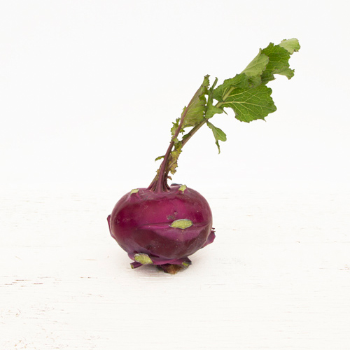 Purple Kohlrabi is a plant related to cabbage, kale, and broccoli. This bulbous stem has smooth, bright purple skin and is harvested at 2-3″ wide for optimal flavor and texture. It’s flesh is firm, crispy, juicy, and bright ivory white. The flavor is likened to broccoli stems, sweet and mild with a hint of cabbage. Prepare Kohlrabi either cooked or raw.