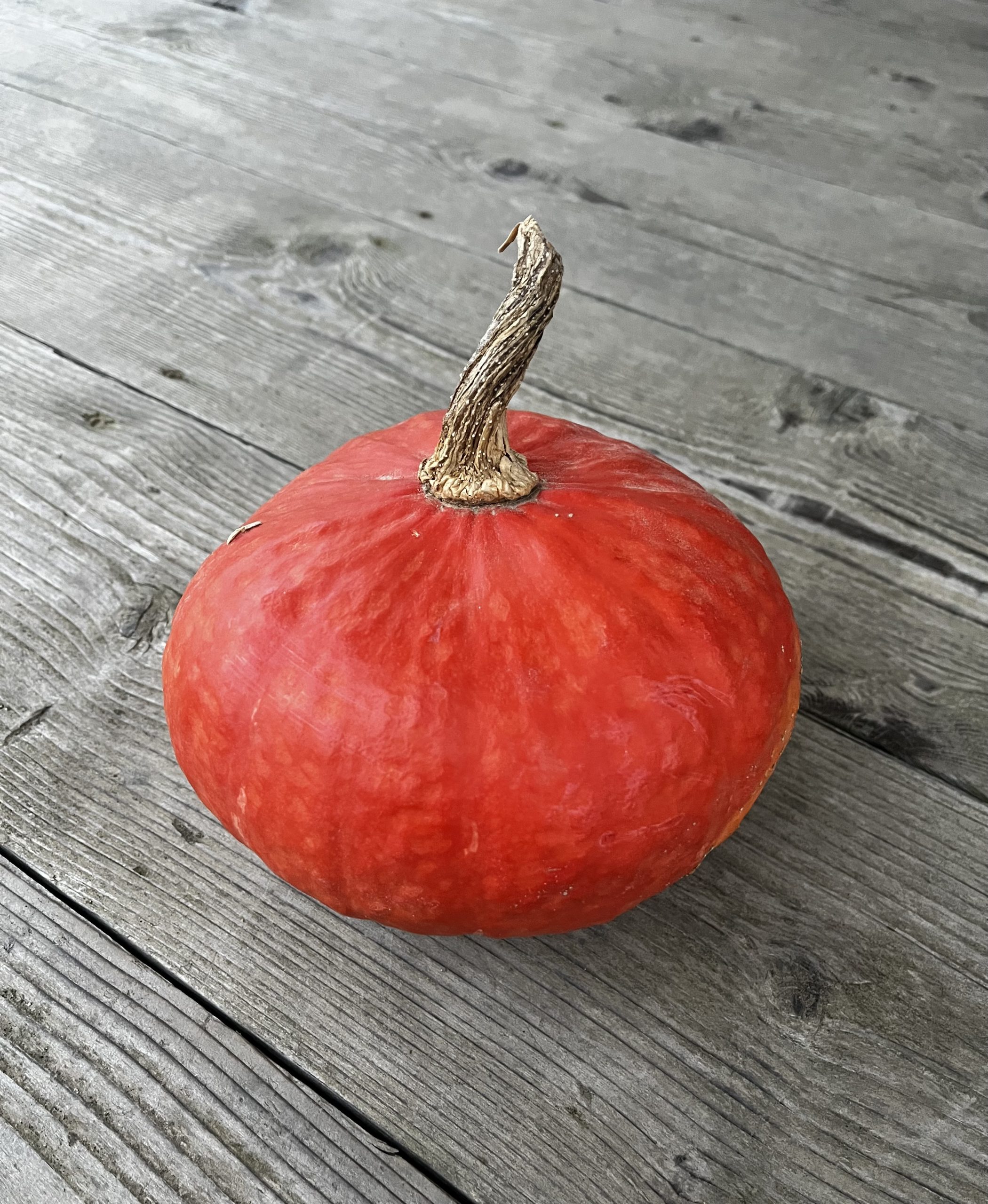 Red Kabocha Squash, or Buttercup squash, is a versatile, squat winter squash. Round with a flattened top, this squash often weighs 2-3lbs but can be larger. It has bright red skin, edible though a little tough, and deep yellow-orange flesh that tastes dry and sweet, similar to sweet potatoes. Great for soups, stir fry, or as a substitute for pumpkin, butternut, or acorn squash.
