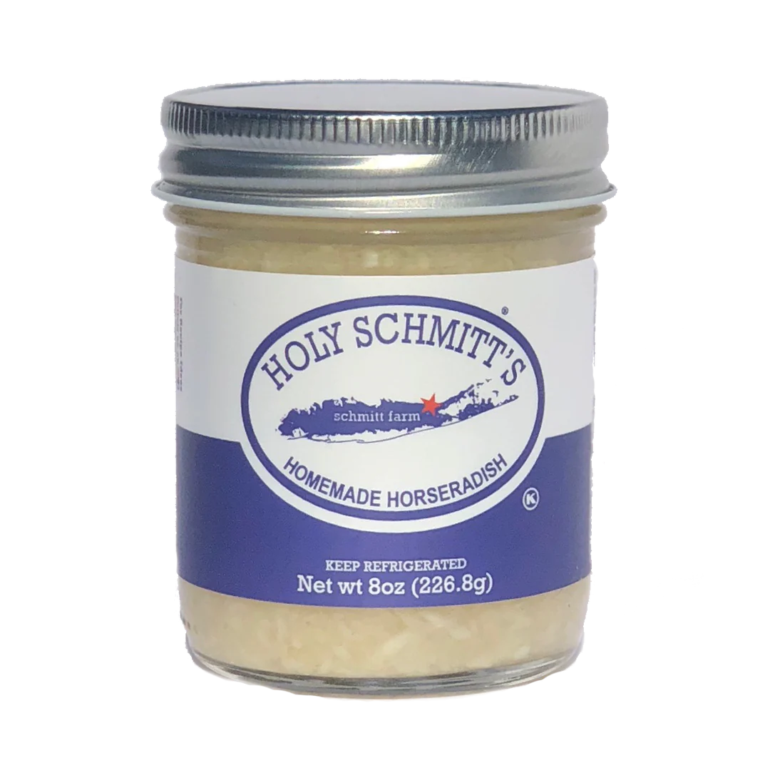 Holy Schmitt’s traditional white horseradish. Locally made with an extra hot kick.