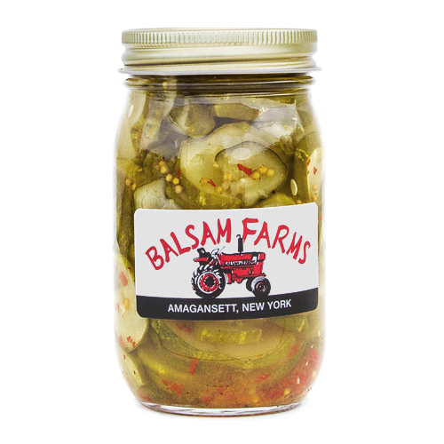 Spicy Bread & Butter Pickles made with Balsam Farms fresh cucumbers.